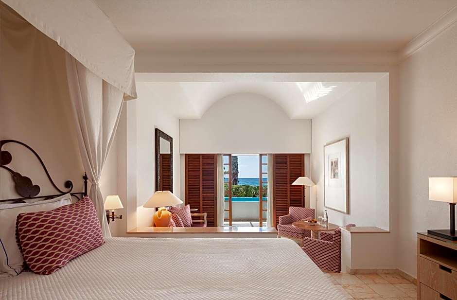 These spacious rooms feature cool marble flooring that bare feet will love and step-out balconies from which to savor the changing colors of the Mediterranean.