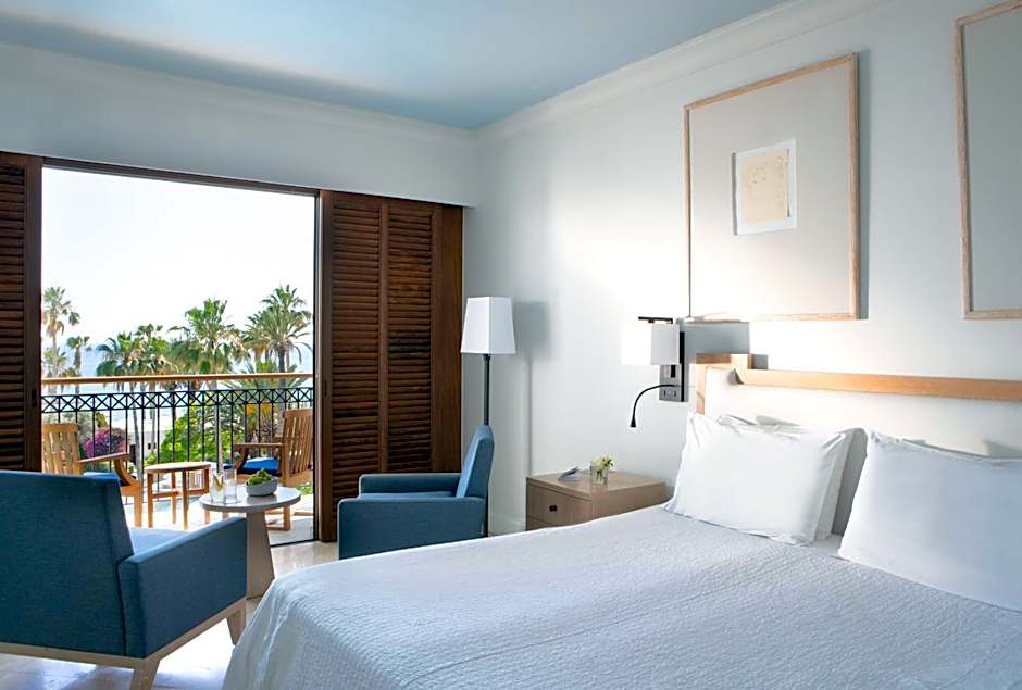 With unlimited views of the sea and the hotel's tropical gardens from step-out balconies, this room is larger and has either twin or double beds, marble bathroom and marble floors. Some rooms interconnect. Free Wi-Fi is available.